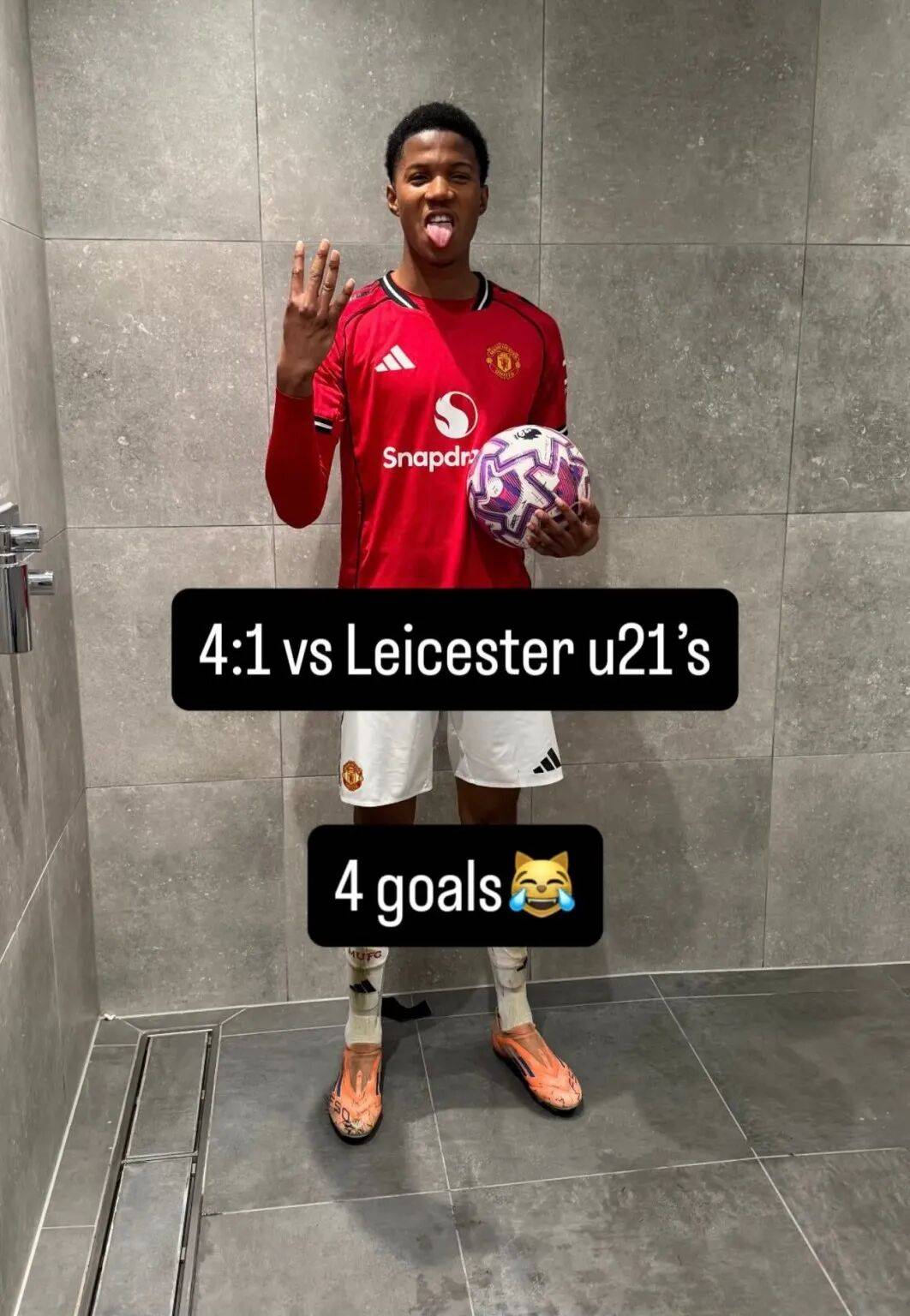 奥比包办了4-1击败莱斯特城U21的全部进球,扩大了球队在英超2级联赛的积分优势。曼联U21如今14场拿到33分,而且还比第二名切尔西和伊普斯维奇少赛一场。