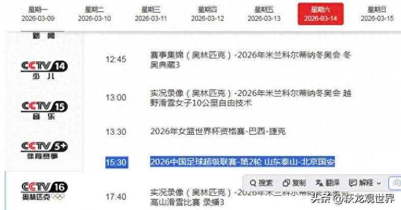 2026-03-12宝威体育,宝威体育官网,宝威体育APP下载,宝威体育网址2026赛季中超联赛第二轮,一场万众瞩目的京鲁大战即将于3月14日下午15:30在山东泰山的主场激情上演。这场对决不仅仅是一场普通的比赛,更是承载着无数球迷记忆、深深烙印在中超历史中的经典德比。届时,中央电视台奥林匹克频道CCTV16将对比赛进行现场直播,球迷朋友们也可以通过北京体育、咪咕视频、央视频等网络平台同步收看,共同见证这场巅峰对决。