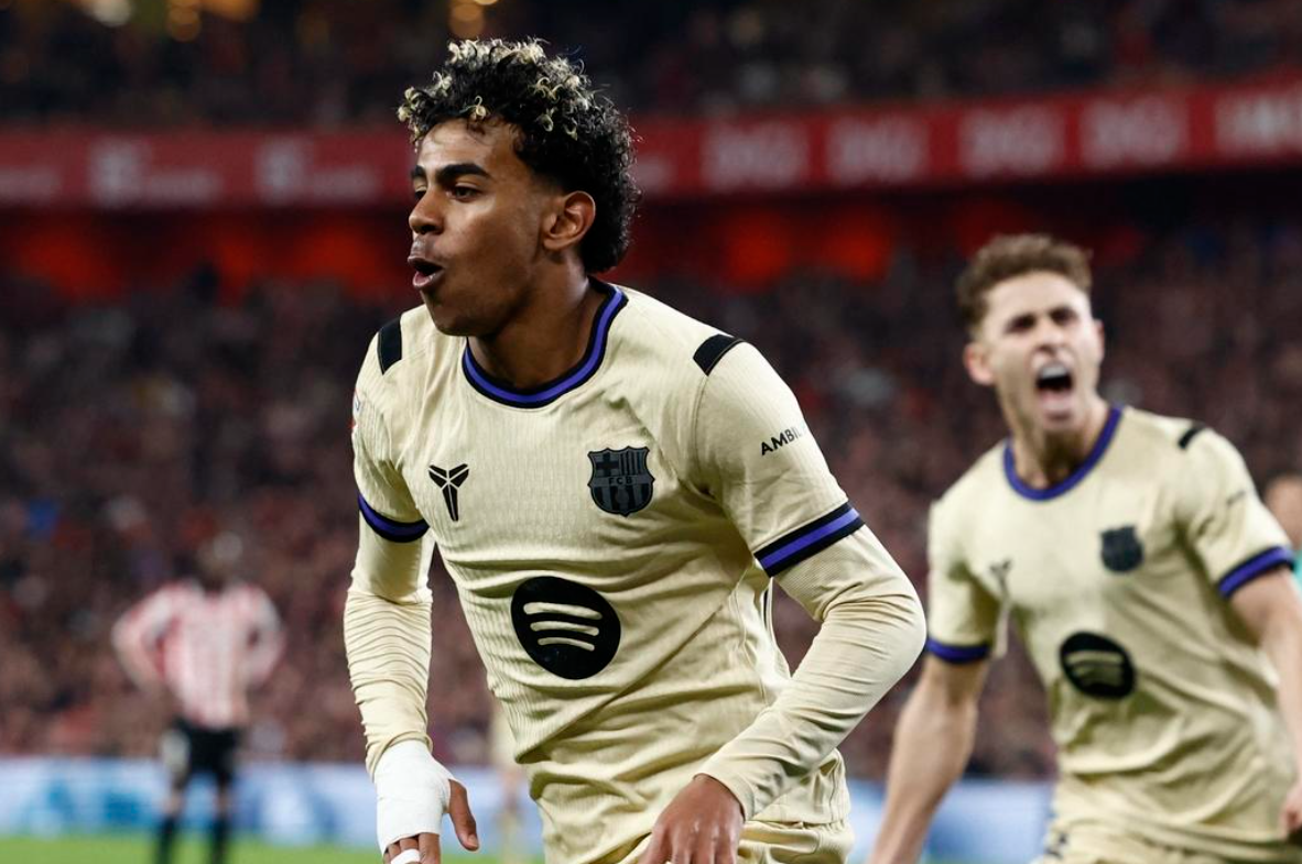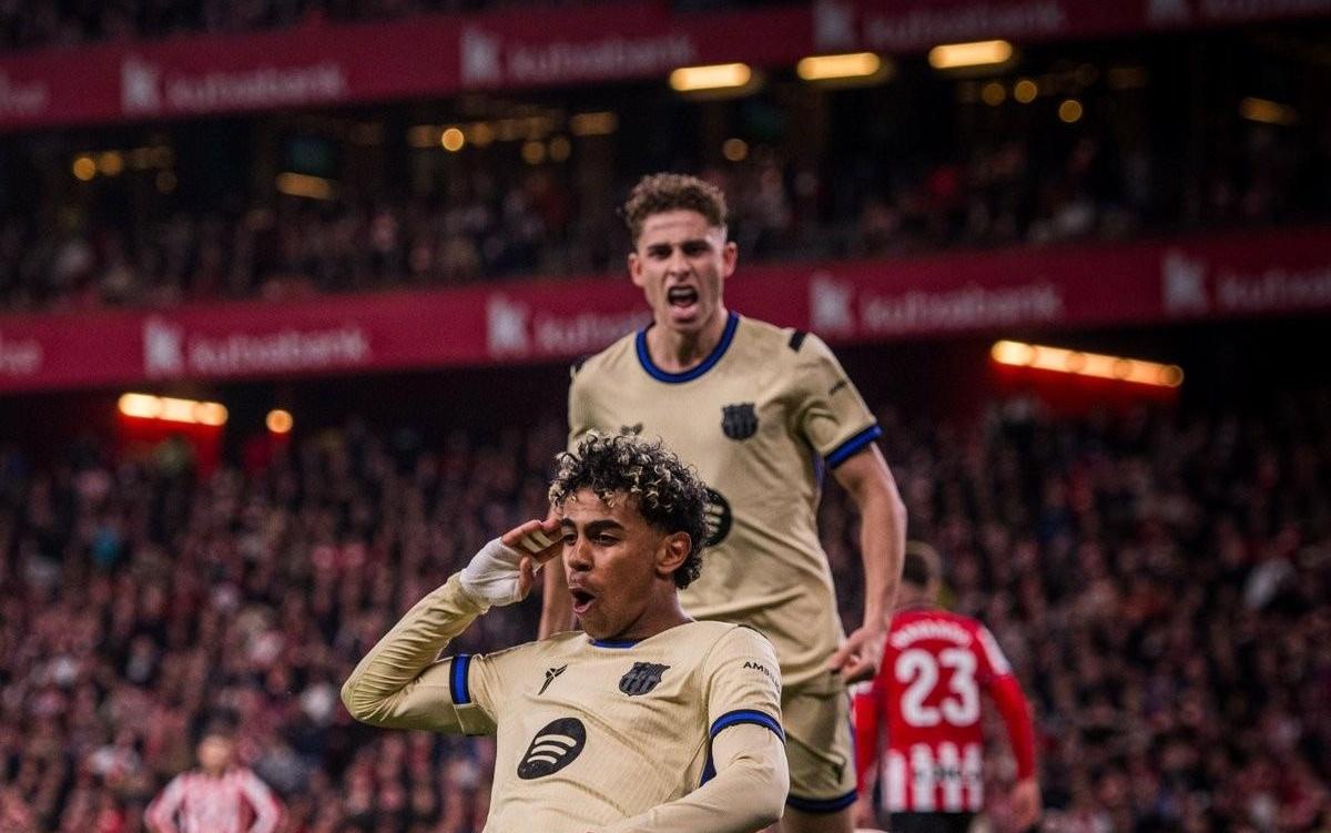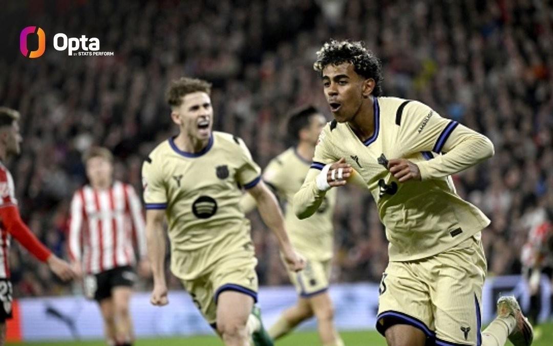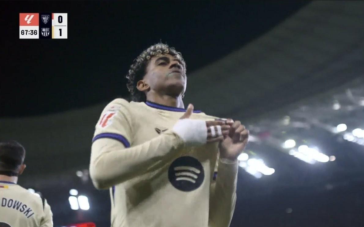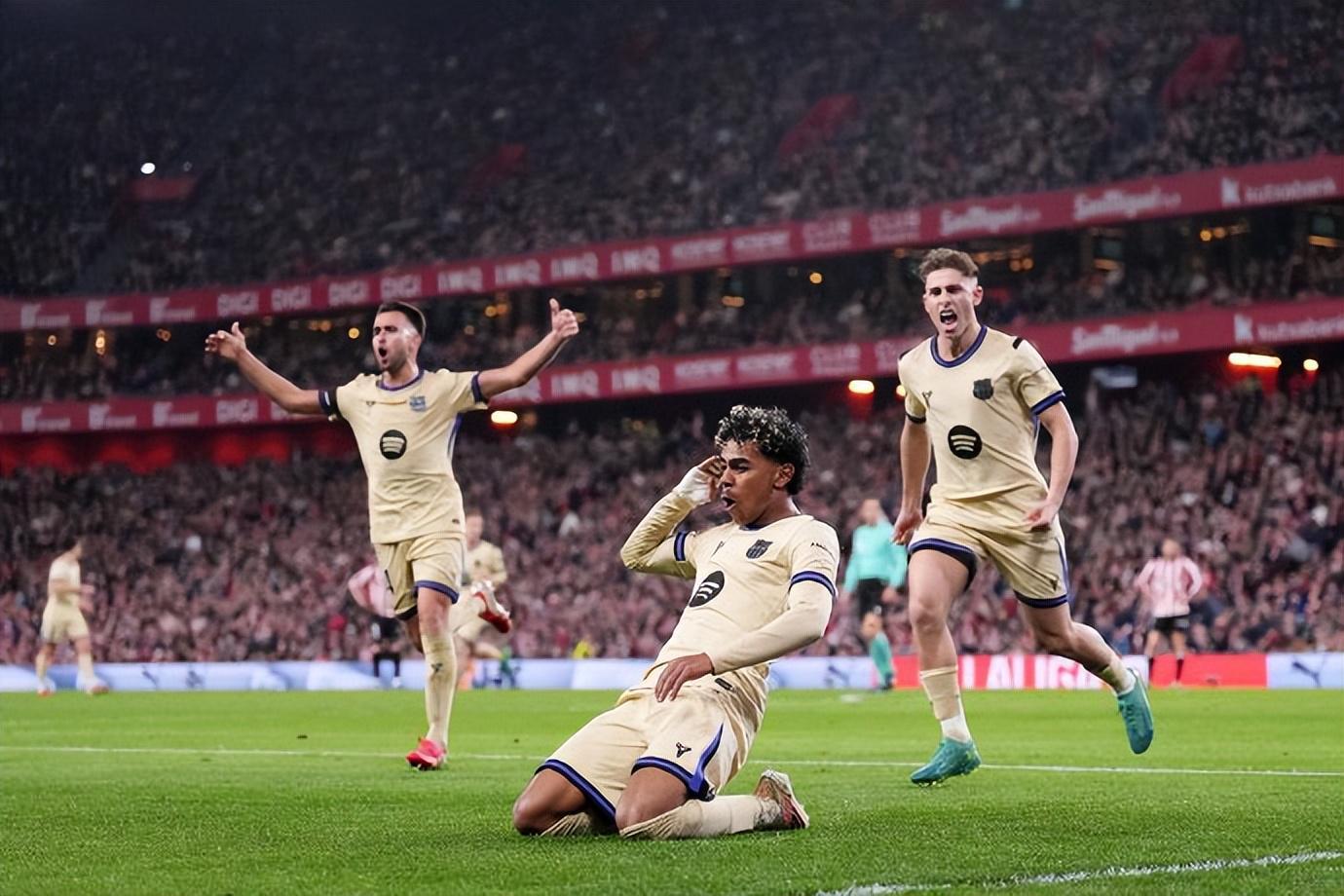 里程碑,亚马尔国家队+俱乐部一线轮,巴塞罗那客场对阵毕尔巴鄂竞技,亚马尔下半场破门为巴萨取得领先,至此,亚马尔国家队和俱乐部一线球。