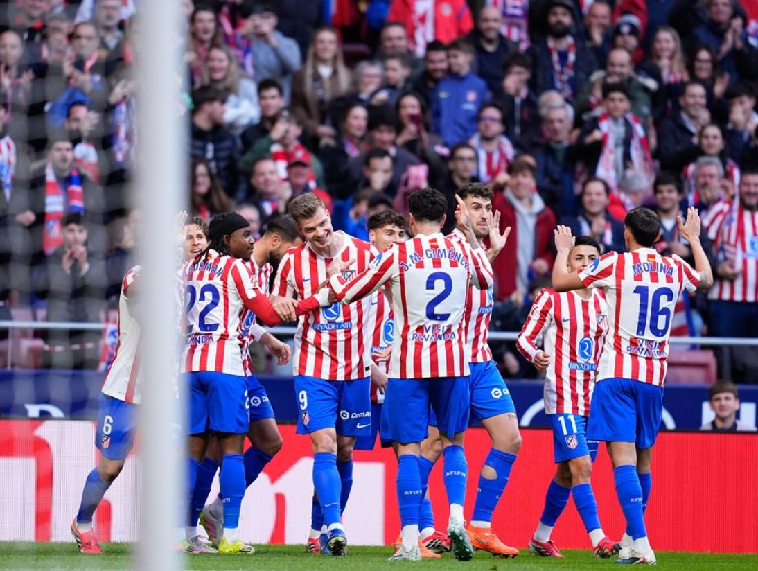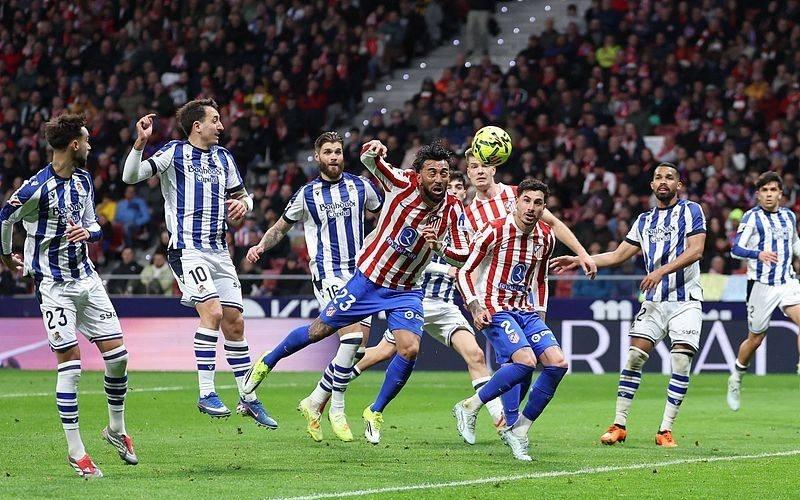 北京时间3月8日,西甲第27轮,马竞主场迎战皇家社会。比赛中。图源:视觉中国上半场,瑟洛特凌空垫射破门,索莱尔推射闪电扳平。下半场,格列兹曼脚后跟助攻尼古拉斯-冈萨雷斯破门,奥亚