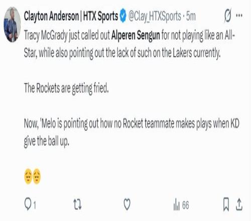 麦迪在直播间谈到申京的表现,他称申京完全没有展现出全明星球员的水准,同时他认为火箭阵容中根本没有湖人那样的优质角色球员。火箭队正在遭遇重创,除了KD以外没有任何一个人能发动进攻。