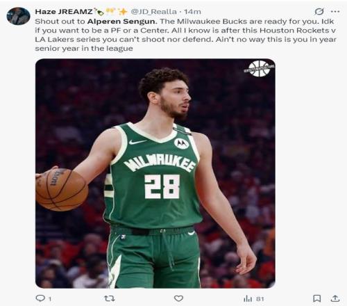 火蜜:感谢申京的复出,密尔沃基雄鹿已经准备好迎接你了。(暗示用申京去换扬尼斯)