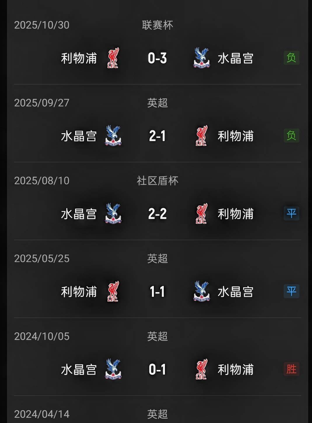 真正让这场比赛充满话题性的,是两队近年来的交锋历史。 根据德国转会市场的数据,利物浦已经对阵水晶宫遭遇了三连败。 如果回顾双方近10次交手,利物浦的战绩是3胜3平4负,反而略处下风。 本赛季的三次对话,每一次都让利物浦球迷感到刺痛。 去年9月的英超联赛中,利物浦客场1比2输给了水晶宫。 紧接着在10月份的英格兰联赛杯中,利物浦更是以0比3的比分惨败给对手。 再加上赛季初社区盾杯的点球失利,水晶宫俨然成为了利物浦本赛季最大的“克星”。